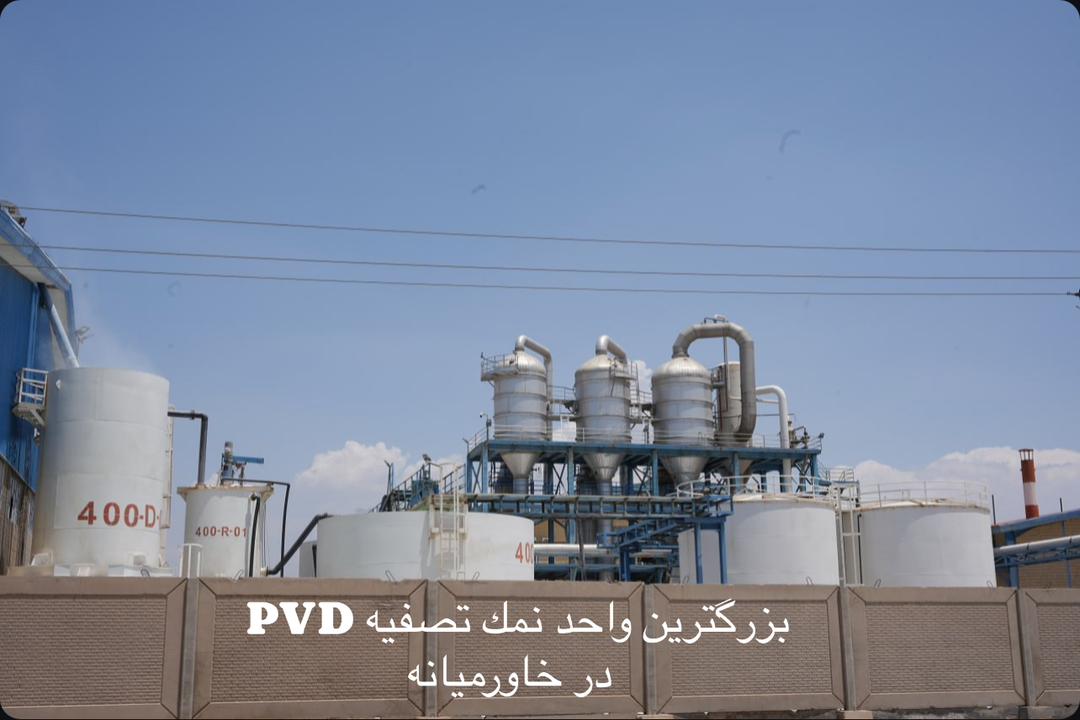 این خط تولید با بهرهگیری از روش PVD، نمک تصفیه با خلوص ۹۹/۸٪ با دانهبندی ۴۵۰-۲۵۰ میکرون تولید میکند.